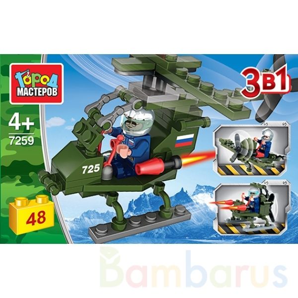 С помощью этого занимательного конструктора ваш ребёнок может собрать целых 3 реалистичные версии военного вертолёта. Набор вдохновит малыша на новые увлекательные сюжеты для игр и станет гордостью его игрушечной коллекции.