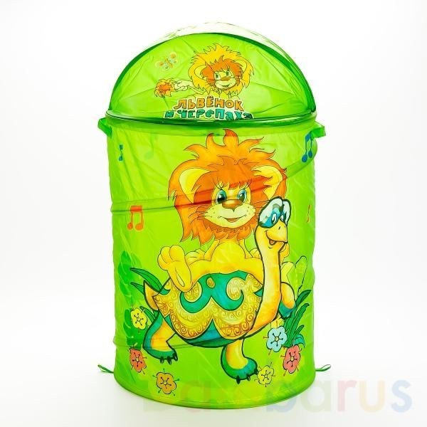 Яркая корзина для игрушек в стиле мультфильма "Львёнок и Черепаха" вместительна, ее яркий дизайн идеально впишется в интерьер детской комнаты. В корзину поместятся и машинки, и куклы, мягкие игрушки и т.д. Ребенку самому будет интересно заняться уборкой в комнате, поэтому приучить к аккуратности и порядку будет легко. Сделана из прочного безопасного высококачественного текстиля с металлическим каркасом. Размер 43*60 см. Рекомендовано детям от 1 года.