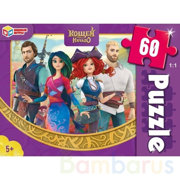 Классические пазлы в коробке «Кощей. Начало» ТМ «Умные игры» непременно понравятся маленьким поклонникам одноимённого полнометражного мультфильма:- 60 деталей- размер готовой картинки: 330 х 237 мм- любимые персонажи- яркие цвета- все элементы хорошо и плотно соединяются друг с другомЗадача ребёнка…