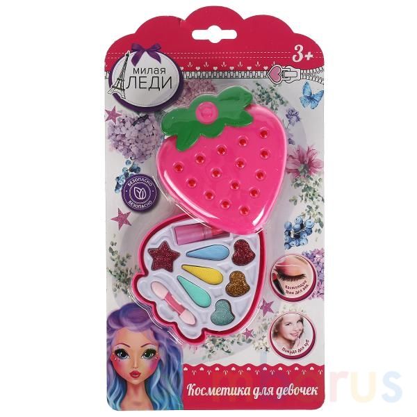 Девочки в любом возрасте хотят быть красивыми. Специально для юных модниц был разработан этот набор, состоящий из теней для век и губной помады в красивом футляре в виде ягоды клубники. Маленькая принцесса обязательно оценит яркие цвета, волшебный блеск и модную упаковку. Развивайте чувство стиля и вкуса, учите девочку создавать свой неповторимый образ вместе с косметикой ТМ «Милая леди».