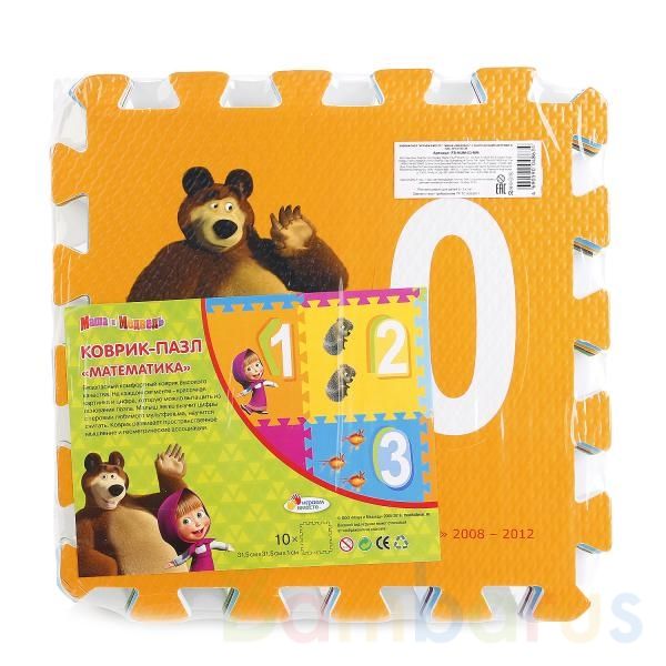 КОВРИК-ПАЗЛ "ИГРАЕМ ВМЕСТЕ" "МАША И МЕДВЕДЬ" С ВЫРЕЗАННЫМИ ЦИФРАМИ В ПАК. 30*8,5*30СМ в кор.10шт Коврик-пазл "Маша и Медведь" сделан не только для игры, но и для развития ребёнка. Он состоит из 10-ти ярких, больших сегментов, на каждом из которых вырезана цифра и изображены персонажи знаменитого му…