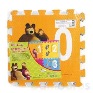 КОВРИК-ПАЗЛ "ИГРАЕМ ВМЕСТЕ" "МАША И МЕДВЕДЬ" С ВЫРЕЗАННЫМИ ЦИФРАМИ В ПАК. 30*8,5*30СМ в кор.10шт Коврик-пазл "Маша и Медведь" сделан не только для игры, но и для развития ребёнка. Он состоит из 10-ти ярких, больших сегментов, на каждом из которых вырезана цифра и изображены персонажи знаменитого мультсериала. Коврик будет служить мягкой площадкой для игр, полем для развития мелкой моторики, изучения цифр, форм фигур и цветов. Он сделан из безопасного материала, не содержит токсичную краску. Размер составляет 30*8,5*30 см. Рекомендуется детям от 3-х лет.