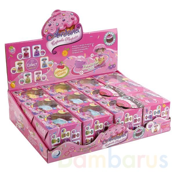 Кукла в пирожном - это удивительный сюрприз-трансформер, от которого дети будут в восторге. Сняв шляпку с аппетитного кекса с глазурью, вы увидите внутри пирожного маленькую куклу. Вывернутая гофрированная упаковка превращается в пышную юбку. Верх пирожного используется как объёмная шляпка, она держится на игрушке благодаря специальной резиночке. Ребёнок может собрать всю коллекцию куколок в пирожных - в ассортименте 6 вариантов дизайна. Рекомендовано детям от 3 лет.