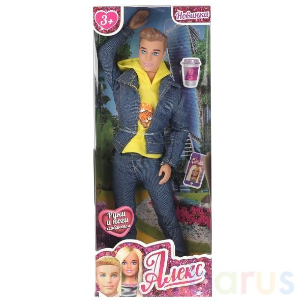 Стильный Алекс, друг Софии, одет в ярко-жёлтую толстовку с капюшоном, украшенную принтом в виде леопарда, а также базовые джинсы и джинсовку. Одежду легко снять и надеть. С такой модной куклой девочке будет интересно и весело играть: благодаря тому, что руки и ноги куклы подвижны, им можно придать любое положение. Детально проработанный дизайн игрушки вдохновит девочку на новые игровые сюжеты.