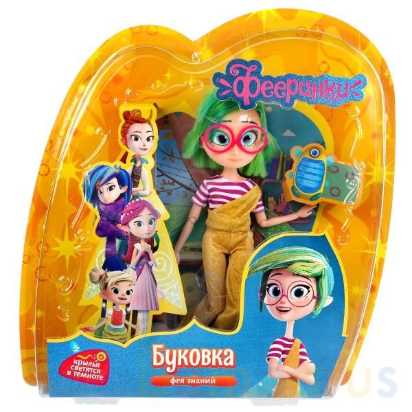 Буковка - юная фея с короткими ярко-зелёными волосами. Она очень умная, носит круглые розовые очки. Буковка одета в комбинезон горчичного цвета и полосатую футболку. С такой модной куклой девочке будет интересно и весело играть: благодаря тому, что руки и ноги куклы подвижны, им можно придать любое положение. Детально проработанный дизайн игрушки вдохновит вашу дочку на новые игровые сюжеты.