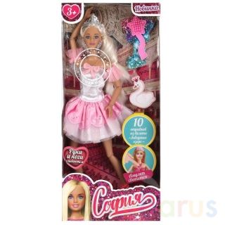 Прима-балерина София одета в бело-розовую пачку с декором из шитья и блестящего фатина. Образ дополняют изящные серьги и сверкающая корона. Одежду и аксессуары легко снять и надеть. С такой модной куклой девочке будет интересно и весело играть: благодаря тому, что руки и ноги куклы подвижны, им можно придать любое положение. У Софии длинные красивые волосы, которые хозяйка куклы сможет заплетать в разные причёски. Детально проработанный дизайн игрушки вдохновит девочку на новые игровые сюжеты.