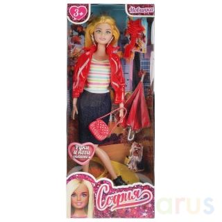 Модница-София одета в стильную лаковую ветровку, топ в полоску и юбку-карандаш, образ дополнен изящными серьгами и сумочкой. С такой модной куклой девочке будет интересно и весело играть: благодаря тому, что руки и ноги куклы подвижны, им можно придать любое положение. У Софии длинные красивые волосы, которые хозяйка куклы сможет заплетать в разные причёски. Детально проработанный дизайн игрушки вдохновит девочку на новые игровые сюжеты.