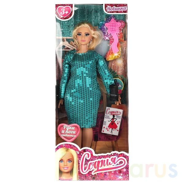 Модница-София одета в приталенное изумрудное платье из блестящих пайеток. Одежду легко снять и надеть. С такой модной куклой девочке будет интересно и весело играть: благодаря тому, что руки и ноги куклы подвижны, им можно придать любое положение. У Софии длинные красивые волосы, которые хозяйка куклы сможет заплетать в разные причёски. Детально проработанный дизайн игрушки вдохновит девочку на новые игровые сюжеты.