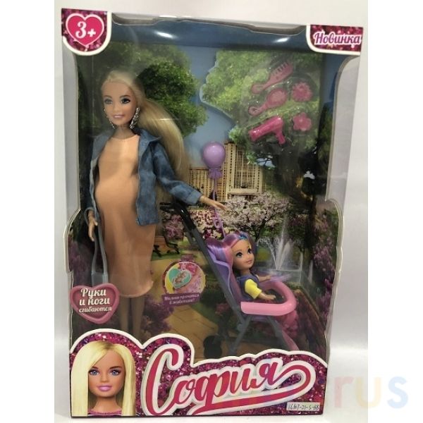 Набор кукол «Беременная София с дочерью» ТМ «Карапуз» станет прекрасным подарком для вашей принцессы:- руки и ноги сгибаются- малыш прячется в животикеВ комплекте:- 3 куклы: София, дочка и малыш- коляска с шариком- фен- расчёска-гребень- расчёска-щётка- 2 заколки- сумочкаНа прогулку с дочерью София…