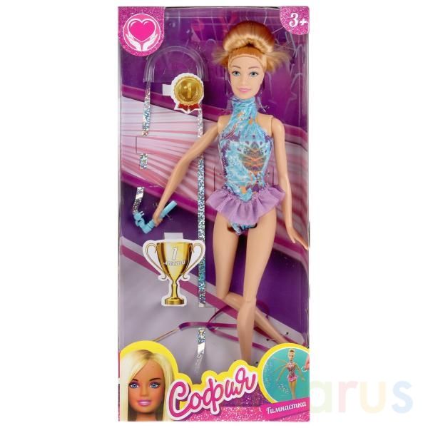 София одета в стильный купальник для занятий гимнастикой в голубых и сиреневых тонах. Одежду легко снять и надеть. С такой модной куклой девочке будет интересно и весело играть: благодаря тому, что руки и ноги куклы подвижны, им можно придать любое положение. У Софии длинные красивые волосы, которые собраны в высокую причёску, хозяйка куклы сможет, пожеланию, их распустить и заплетать в разные причёски. А благодаря ярким мелкам для волос малышка сможет сделать образ куклы или свой собственный совершенно неповторимым. Детально проработанный дизайн игрушки вдохновит девочку на новые игровые сюжеты.