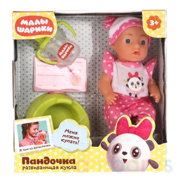 Развивающая кукла «Малышарики. Пандочка» ТМ «Карапуз» станет прекрасным подарком для маленьких поклонниц мультсериала про забавных шарообразных зверюшек:- пьёт из бутылочки- ходит на горшок- можно купатьВ комплекте:- бутылочка- горшок- свидетельство о рожденииЭтот милый пупс, с детально проработанн…