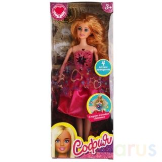 Модница-София одета в нарядное платье с пышной юбкой на сетке, декорированное мерцающими звёздами. У Софии длинные красивые волосы, которые хозяйка куклы сможет заплетать в разные причёски. Детально проработанный дизайн игрушки вдохновит девочку на новые игровые сюжеты.