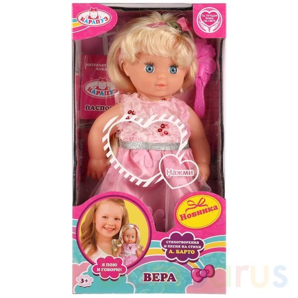 Интерактивная кукла ТМ «Карапуз» - озвученная игрушка, рассказывающая 3 стиха («Бычок», «Зайка», «Мишка») и поющая песенку «Лошадка» А. Барто.На кукле: модный сарафан и туфельки (легко снять и надеть). Лицо куклы детально проработано. Длинные светлые волосы легко расчёсывать и создавать стильные пр…