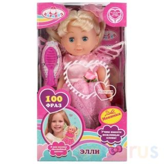 Интерактивная кукла «Элли» ТМ «Карапуз» знает 100 фраз. Нажмите кнопку на груди куколки и услышите: - песенки «АБВГДейка» и «Волшебный цветок»- 2 загадки- 2 скороговорки- 3 стихотворения- учим вежливые слова- учимся помогать маме На кукле красивое сиреневое платье с блёстками и туфельки. Спину укра…