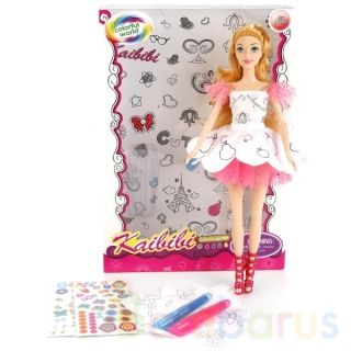 Кукла - оригинальная новинка для творческого развития девочек. Уникальность игрушки в том, что ребёнок может самостоятельно раскрасить специальными фломастерами и украсить наклейками платье куклы. В набор входит: кукла, 2 цветных фломастера, 2 листа с наклейками, юбка и корсет для раскрашивания. Длинные светлые волосы куклы можно расчёсывать и заплетать в косички. Рекомендовано детям от 3 лет. Дизайн в ассортименте.