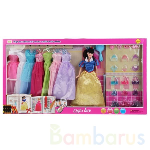 Игровой набор «Принцесса» станет хорошим подарком на праздники.Комплектация:- 7 дополнительных нарядных платьев- 6 пар обуви- 3 сумочки- 3 короны- 3 колье- расчёска- различные аксессуарыЭта красавица-кукла просто мечта. На ней шикарное розовое платье в пол. Шелковистые волосы волосы куколки легко р…