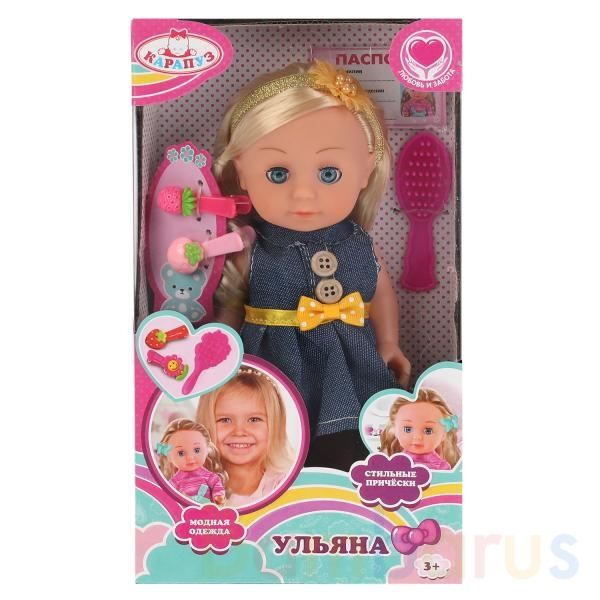 Куколка «Ульяна» ТМ «Карапуз» с набором для стильных причёсок станет любимицей маленьких модниц! Её очаровательное личико детально проработано и вызовет у ребёнка самые трепетные чувства.