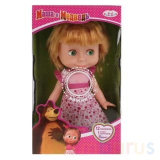 Кукла «Маша в день рождения», персонаж мультсериала «Маша и Медведь» ТМ «Карапуз» - озвученная игрушка, которая поёт 12 песенок ("День рождения", "Про следы", "Про варенье", "Про друзей" и другие), рассказывает 1 стих-потешку и говорит 8 фраз из мультфильма (нажмите кнопку на животике).