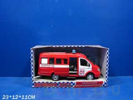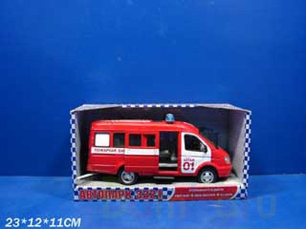Машинка порадует маленького гонщика яркой расцветкой и скоростью, ведь она оснащена инерционным механизмом (если её потянуть назад и отпустить, то она начнёт двигаться вперёд). На крыше машины находятся мигалки и надписи "пожарная охрана" со всех сторон машины.