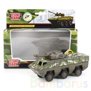 Игрушечный БТР "Тайфун" сделает ещё интереснее игру в войнушку. Он сделан из лёгкого металла, окрашен в камуфляжный цвет, оснащён вращающейся вокруг своей оси башней. Боковая и задняя дверцы открываются, БТР дополняется инерционным механизмом. Размер игрушки составляет 15 см. Рекомендуется детям от 3-х лет.