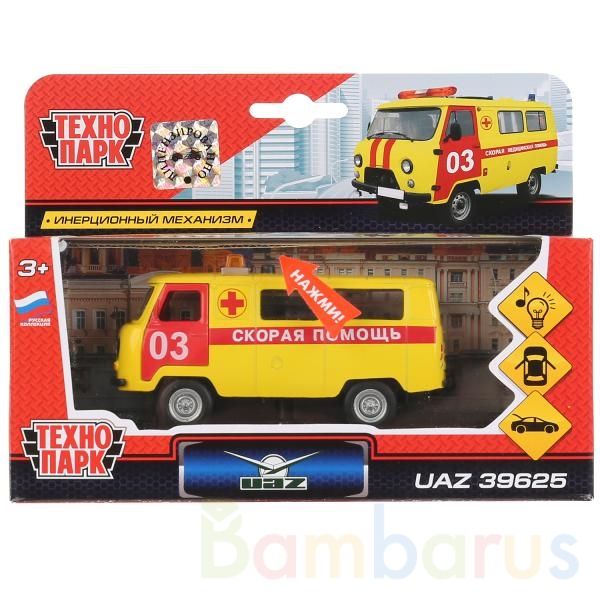 Игрушечная модель "Скорой помощи" прекрасно дополнит коллекцию маленького автолюбителя. Она выполнена из лёгкого металла, окрашена в устойчивую и не токсичную краску жёлтого цвета. Передние двери открываются наружу и в стороны, фары, знак, зеркала и остальные мелочи проработаны детально, сверху установлена мигалка, открывается задняя дверь. Машина оснащается инерционным механизмом, что делает игру интереснее. Её можно запускать снова и снова. Также игрушка дополняется звуковым модулем: при нажатии на кнопку раздаётся звук. Развивает мелкую моторику, воображение, слух. Рекомендуется детям от 3-х лет.