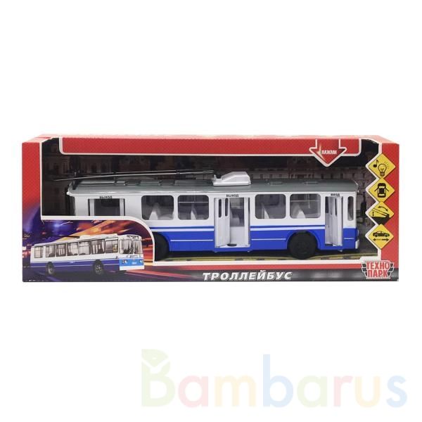 Городской транспорт очень привлекает внимание детей, поэтому они часто просят родителей купить им игрушки, имитирующие троллейбус. Эта игровая модель повторяет все особенности настоящнго транспорта: у него есть «рога» и двери как настоящие. Троллейбус прекрасно движется по поверхности, поэтому кроха без труда будет устраивать игры, имитирующие движение транспорта по маршруту. Такие занятия помогут развить у ребенка фантазию и воображение, улучшат моторику рук и координацию. Троллейбус оснащен инерционным механизмом, если его потянуть назад и отпустить, то он начнет движение вперед. Токоприемник машинки можно поднимать, а двери без труда открываются. Троллейбус воспроизводит звуки, похожие на шум движения городского транспорта и объявления диктором остановок. Лампочки на корпусе игрушки мигают. Масштаб 1:43. Рекомендовано детям от 3-х лет. Работает от 3 батареек типа LR 41 (AG 3) (входят в комплект).