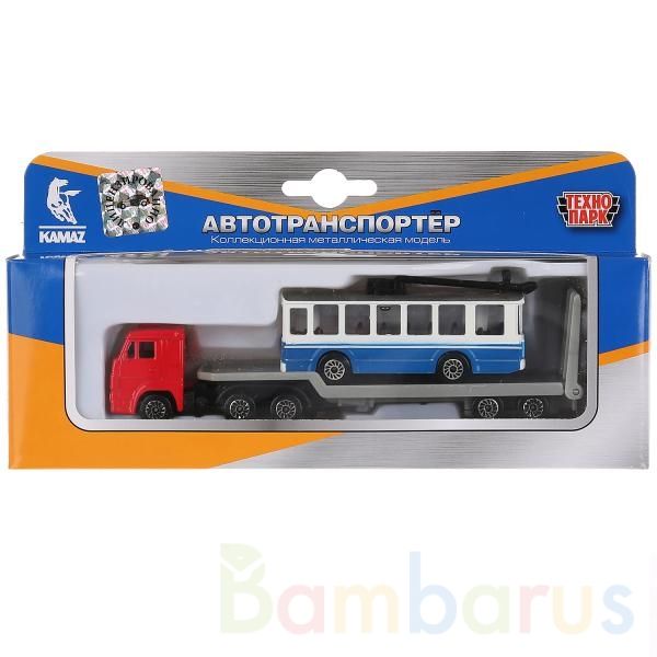 Металлическая модель «Автотранспортёр» ТМ «Технопарк» - прекрасный подарок для ребёнка:- машина-транспортёр- троллейбус в комплекте- подвижные элементы- съёмный прицеп- инерционный механизм (поставьте машинку на ровную поверхность, потяните за корпус назад, отпустите и она начнёт быстро двигаться в…
