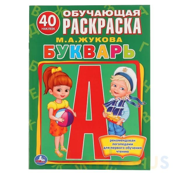 Обучающая раскраска с наклейками «М.А. Жукова. Букварь» ТМ «УМка» приглашает детей порисовать и поучиться: