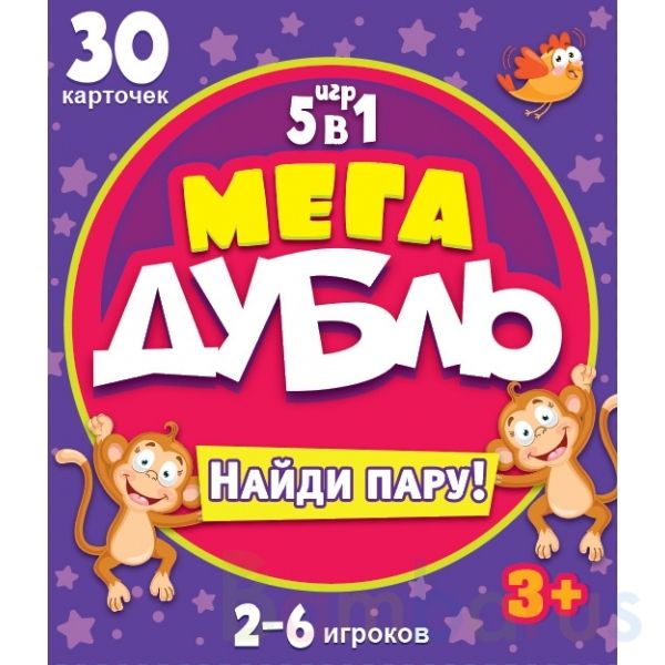 Карточная игра 5 в 1 «Мега Дубль. Найди пару!» ТМ «Умные игры» - отличный вариант для весёлого и интересного времяпровождения.Особенности и комплектация:- 30 красочных карточек с изображением милых динозавров- 5 вариантов игр- понятные правила игры- количество участников: от 2-х до 6-ти человек- дл…