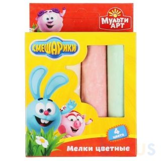 Цветные мелки "Смешарики" являются отличным способом развития творческих навыков у ребёнка. Они предназначены для рисования на асфальте или специальной доске. В набор входит 4 цвета: жёлтый, синий, красный и зелёный. Упакованы в небольшую коробочку с изображенными на ней героями знаменитого мультсериала. Рекомендуется детям от 3-х лет.