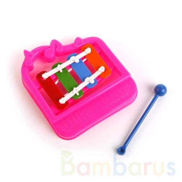 Игрушка выполнена в виде детского музыкального инструмента - металлофона. На корпусе находится 4 пластинки радужных цветов, по которым нужно ударять небольшой палочкой, чтобы извлечь звуки разной тональности. Используя игрушку, можно научить ребёнка различать на слух звуки разной высоты, а также играть на нём простые мелодии. Такие игрушечные музыкальные инструменты развивают слух и чувство ритма малышей. Изготовлен из качественного металла и пластика, используемые красители - нетоксичные. Рекомендовано детям от 3 лет.