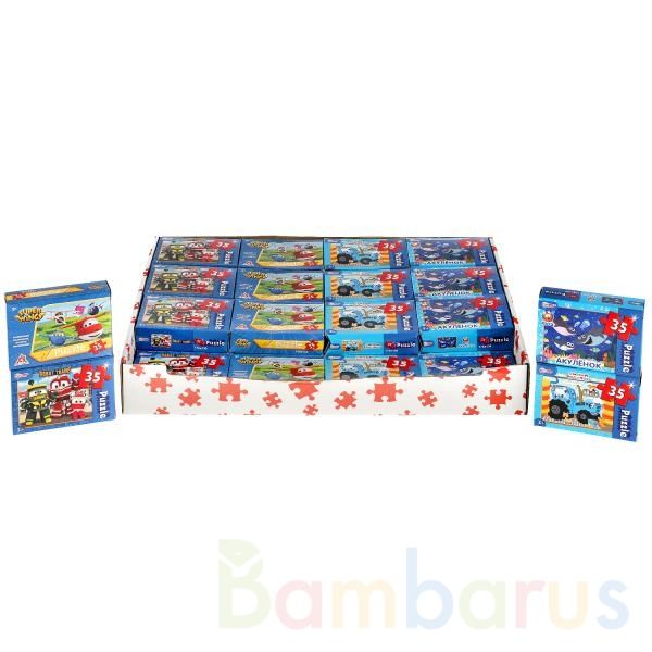 - 4 варианта пазлов: «Акулёнок», «Синий трактор», «Супер Крылья», «Robot Trains»