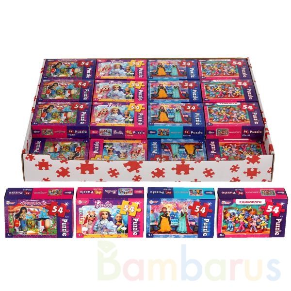 - 4 варианта пазлов: «Принцессы», «Барби», «Единороги», «Принцесса льдов»