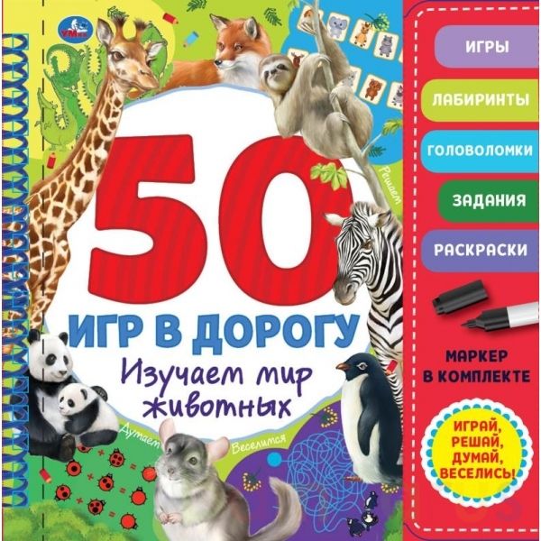 Блокнот на спирали с маркером «50 игр в дорогу. Изучаем мир животных» ТМ «УМка» непременно понравится маленьким любознайкам: