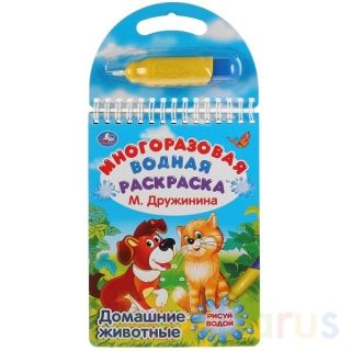 Теперь чтобы раскрасить картинку достаточно провести по ней маркером, предварительно наполненным водой. Интересные иллюстрации с домашними животными не только скрасят досуг ребёнка, но и подготовят его к школе. Раскраска на спирали в игровой манере подготовит руку ребёнка к письму. Благодаря удобному формату её можно взять с собой в дорогу.
