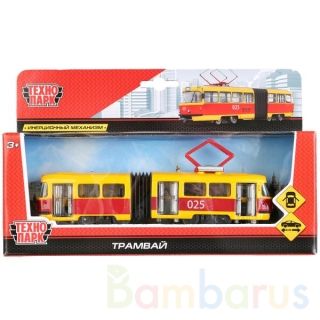 Трамвай ТМ «ТЕХНОПАРК» — это модель реального транспортного средства:- металлический корпус- масштаб 1:110- год кузова — 1962—1999 гг.- все двери открываются- инерционный механизмТакая модель станет отличным подарком и для ребёнка, и для взрослого коллекционера.Рекомендовано для детей от 3 лет.