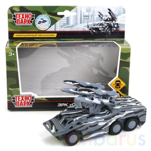 ЗРК - это зенитно-ракетный комплекс, устанавливаемый наверху боевой техники. Представленная модель выполнена в защитном сером цвете хаки. У неё есть 3 пары колёс, на которых надет прорезиненный материал. Игрушка оснащается инерционным механизмом, подвижными элементами и открывающейся боковой дверь…