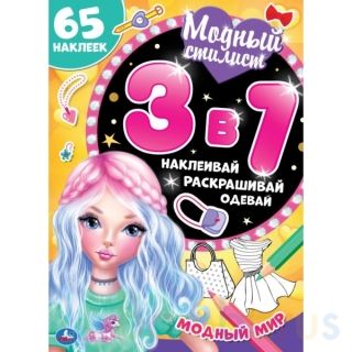 Активити 3 в 1 «Модный стилист» ТМ «УМка» – настоящий подарок для маленькой модницы:- 65 цветных наклеек- разнообразные наряды: наклеивай, раскрашивай, одевай- описания образовЮный дизайнер с удовольствием будет подбирать разнообразные образы для очаровательных персонажей этой активити. И помогать …