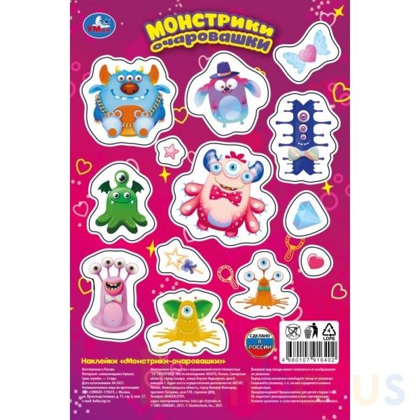 Наклейки «Монстрики-очаровашки» ТМ «УМка» непременно понравятся всем маленьким поклонникам стикеров: