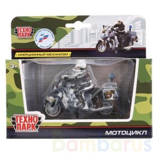 Металлическая модель «Мотоцикл. Омон» ТМ «Технопарк» понравится маленькому защитнику правопорядка: