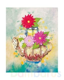 Мозаика из пайеток на холсте «Чаепитие» – увлекательное занятие для проведения досуга.