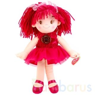 У куколки выразительные глаза и малиновые волосы. На ней платьице с пышной юбочкой и мягкие блестящие туфельки. С этой игрушкой девочка сможет придумать самые разнообразные сюжеты для своих игр. Куклу можно брать с собой в гости, на прогулки и в поездки.