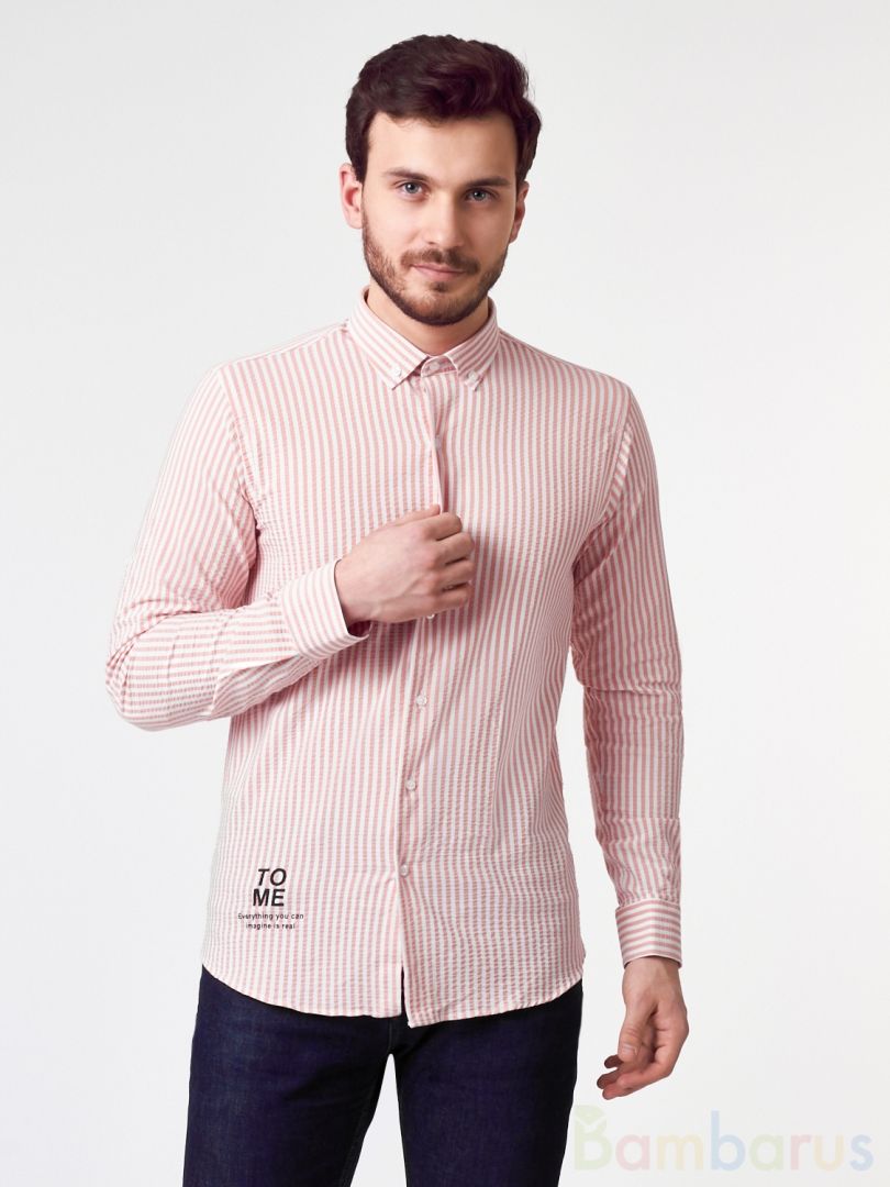 Бело-лососевая прямая мужская рубашка Damon