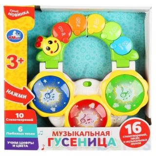 Развивающая игрушка «Музыкальная гусеница» ТМ «УМка» станет прекрасным подарком для ребёнка:- 10 стихотворений Марины Дружининой- 6 любимых песен: «Облака», «Улыбка», «Песенка мамонтёнка», «Чунга-чанга» и др.- музыкальные звуки- учим цифры и цветаЯркая игрушка в виде разноцветной гусеницы обязатель…