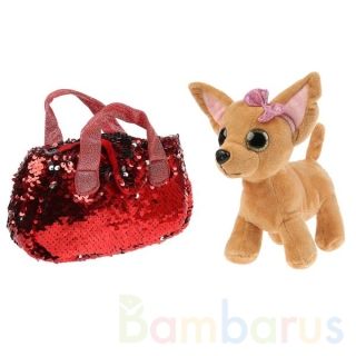 Мягкая игрушка «Собачка» ТМ «Мой питомец» с модной красной сумочкой в комплекте станет отличным подарком для девочки.