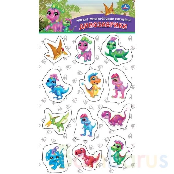 Мягкие многоразовые наклейки «Динозаврики» ТМ «УМка» непременно понравятся всем маленьким поклонникам стикеров: