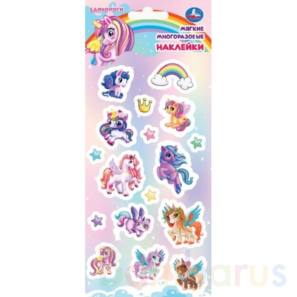Мягкие многоразовые наклейки «Единороги» ТМ «УМка» непременно понравятся всем маленьким поклонникам стикеров: