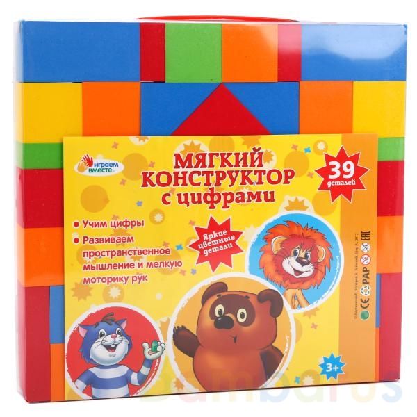 Мягкий конструктор "Играем Вместе" Союзмультфильм 39 дет. с цифрами, цвет в ассорт. в русс. пласт. кор. в кор.2*36шт Мягкий конструктор "Союзмультфильм" - новинка, которая обязательно привлечёт внимание малыша. Набор состоит из 39 деталей и прозрачной упаковки. Элементы выполнены из мягкого, проч…