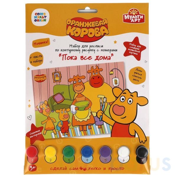 Набор для росписи по контурному рисунку с номерами «Оранжевая корова. Пока все дома» из серии «Сказочная мастерская» ТМ «МультиАрт» - отличный подарок для ребёнка, который будет способствовать развитию его творческих способностей.