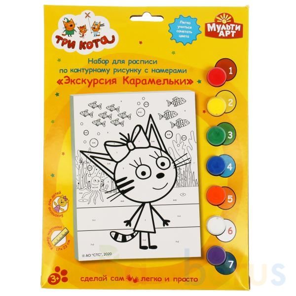 Набор для росписи по контурному рисунку с номерами «Три кота. Экскурсия Карамельки» ТМ «МультиАрт» - отличный подарок для ребёнка, который будет способствовать развитию его творческих способностей.